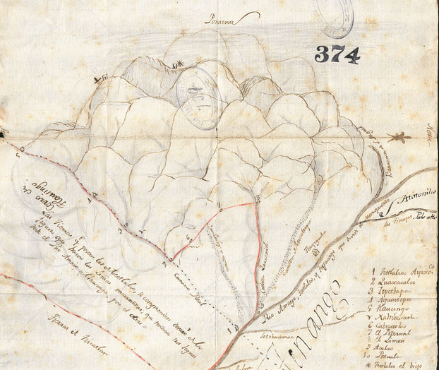 Map from Autos establecidos entre los dueños de las Haciendas Santa Ana Tenango y Santa Clara de Montefalco. 1823.