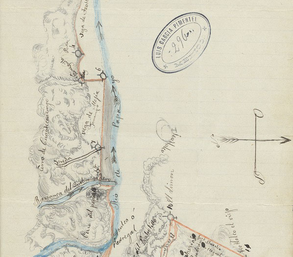 Map from Testimonio de varios documentos y un plano relativos al Repartimiento General de las aguas del Rio de Amatzinac. 1898. George A. Smathers Libraries, University of Florida